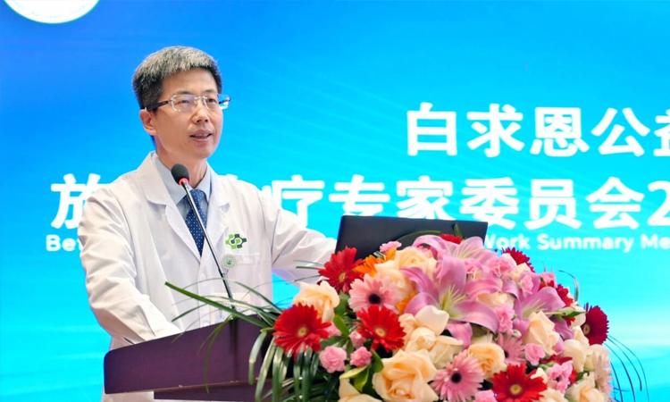 大会主席中华医学会放射肿瘤治疗学分会第十届委员会主任委员、北京大学第三医院放疗科主任(博士研究生导师)、长春肿瘤医院放疗中心院长王俊杰教授在开幕式上全面总结了白求恩公益基金会放射治疗专家委员会 2025 年工作成果,并以《射波刀治疗肿瘤的关键技术》为题展开深度分享,详解放疗机器人的临床应用优势。同时,他围绕长春肿瘤医院引进的瑞尔刀设备(立体定向放射治疗机器人),与现场同仁探讨了先进放疗设备的互补性与应用前景,并提出了区域精准放疗技术共享、设备推广的核心规划,为行业协同发展指明方向。