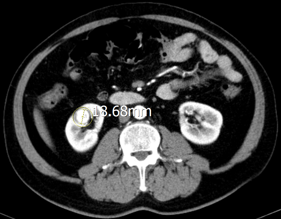 “结合相关影像资料,我们发现患者右肾皮质内见类圆形强化灶,直径约18mm,边界模糊不清,考虑恶性肿瘤。建议开展手术。”泌尿外科主任李胜文表示。