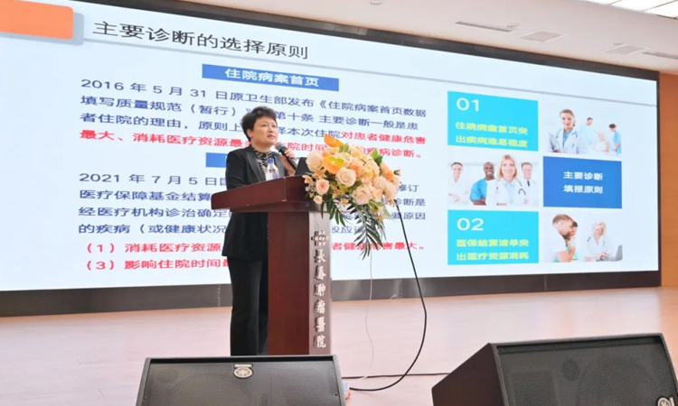 随后徐长妍主任以《基于DRG付费的住院病历书写》为题,系统剖析了病历书写的常见问题与法律风险。她以病历书写规范为基础,结合临床工作特点,从主诉、现病史、病程、化验检查结果记录、修正诊断、会诊记录等方面详细分析了目前我院存在的主要问题并提出了相应的改进措施,帮助临床医生规范书写病历,切实提高院内整体病历书写内涵质量。