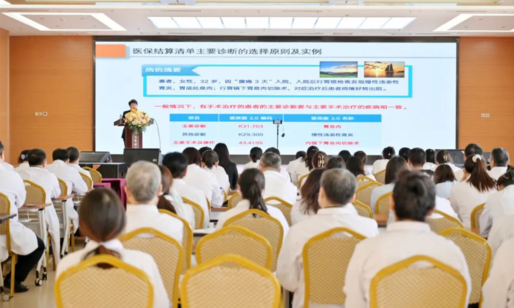 授课前,赵庆国副院长对专家的到来表示诚挚的欢迎。他强调,DRG付费观念的基础是医疗技术的提高,希望临床医务人员一定要合理诊疗,规范书写病案,不断加强培训,使得诊断书写规范化、标准化、精准化,防范医疗风险,提升医疗质量。