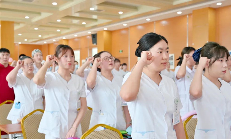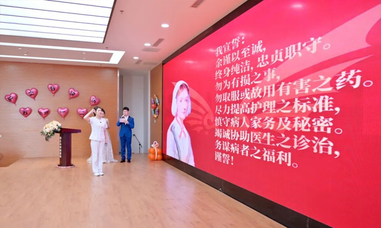 活动最后,医疗院长赵庆国、护理部主任刘影领衔开唱,全体护士长化作舞台上的璀璨星辰,以一曲《小美满》温柔诉说美好期许。南丁格尔誓言响彻会场,让温馨与感动在每个人心间久久萦绕,为这场盛会镌刻下熠熠生辉的动人注脚。